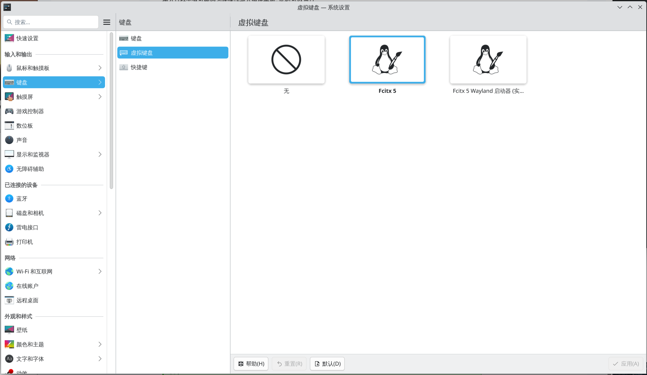 - 虚拟键盘设置为 Fcitx5 (如下图)